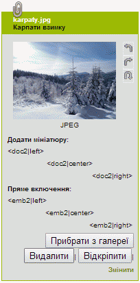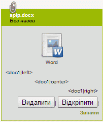 Особливий випадок: тут також ми можемо не поміщати нічого до «стрілки» ([->aut13]...). SPIP автоматично вставить необхідну інформацію. У випадку доданого документу або зображення, якщо ми вручну вводили назви, ця назва і буде відображатися; в іншому випадку буде використовуватися назва файлу.
