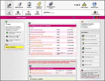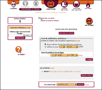 Just abans de l’estiu del 2000, ARNO* realitza el lloc de les edicions Vuibert, el principi del qual és un sistema PHP/mySQL, una interfície privada en la que el personal de l’empresa enriqueix ell mateix el lloc, i un sistema de drets que permet a algunes persones (els «administradors» del lloc) validar alguns elements abans de ser posats en línia. A partir dels elements donats pels editors, el sistema permet també fabricar documents de gestió interna a partir de fitxers HTML que contenen elements condicionals, als que es poden atribuir filtres, el que esdevindrà un dels principis de les plantilles de l’SPIP.