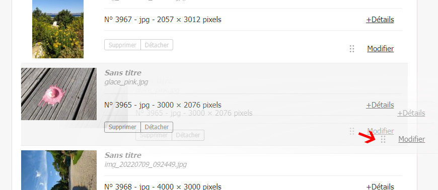 Il est aussi possible de modifier l’ordre des images via un glisser-déposer.