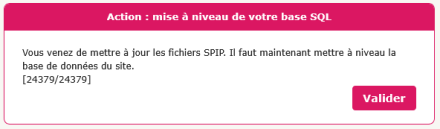 En fonction du type de mise à jour, une procédure de mise à niveau de la base de données vous sera proposé en accédant à l’espace privé. Suivez les indications.