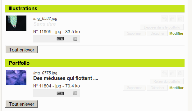 De opmaakcodes <img>, <emb> en <doc> «halen» een afbeelding uit de portfolio om deze vervolgens in de tekst op te nemen.