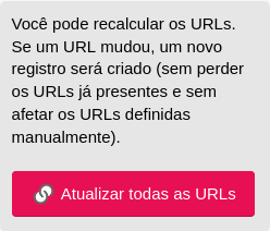 Na página Publicação → Gestão dos URLs, um botão também permite forçar a atualização de todos os URLs do site.