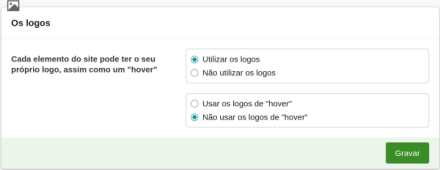 - Por padrão, os logos de hover não estão ativos no SPIP; vincula-se um único logo a um objeto (matéria, autor, seção...). Para poder gerir a exibição de um logo de hover, é preciso ativar a opção "Usar os logos de ’hover’" na interface de administração do SPIP, na página "Configuração > Conteúdo do site" (ecrire/?exec=configuration).