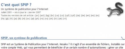 — Якщо політика SPIP видається десь менш гнучкою, ніж у масово багатомовних систем, тим не менш вона пропонує веб-майстрам величезну свободу в роботі з різними функціями і механізмами. Вони можуть одночасно мати дві різні статті, переклади одна одної та інші статті, які не мають таких зв’язків між собою; або окремі розділи для різних мов та інших розділів, які об’єднують кілька мов і т.д.